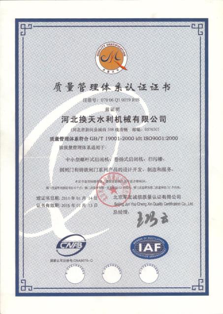 換天質(zhì)量管理體系認(rèn)證證書